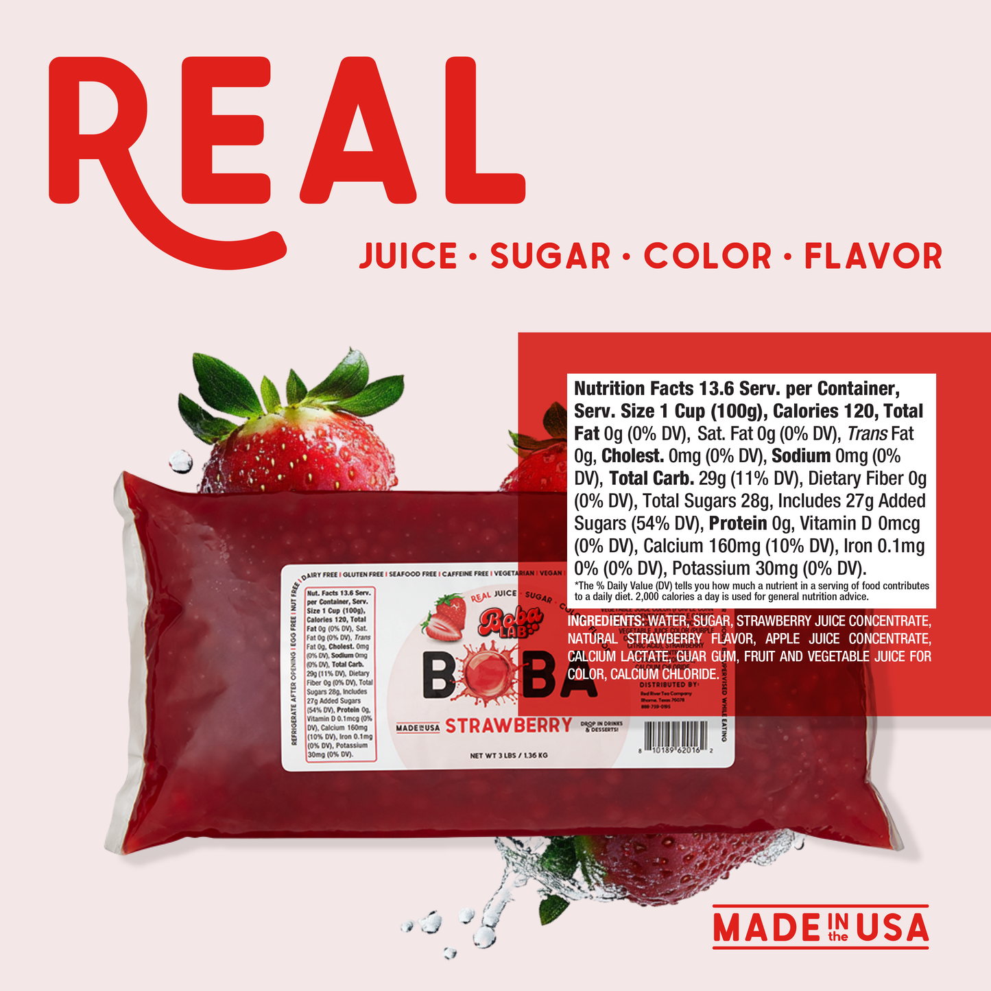 Sweet strawberry boba pearls, perfect for foodservice or at-home creations.