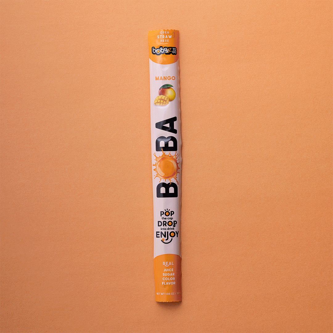 Experience a burst of tropical mango goodness with bursting boba in every sip. This single-serve straw instantly turns any drink into a mango bubble tea paradise.