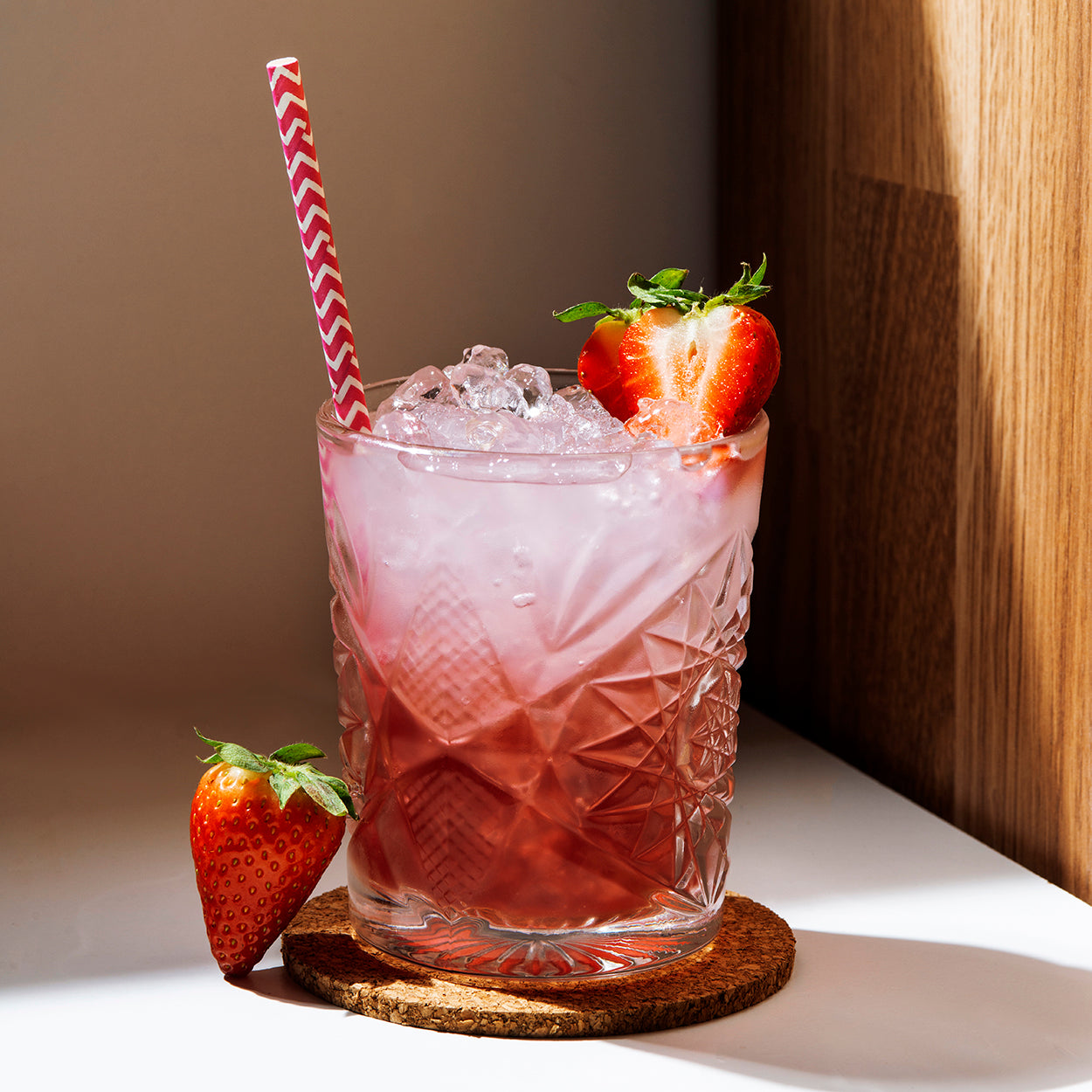 The Strawberry Açaí Refresher blends sweet strawberry flavors with subtle notes of açaí and a splash of green coffee extract for a light, fruity, and invigorating drink.