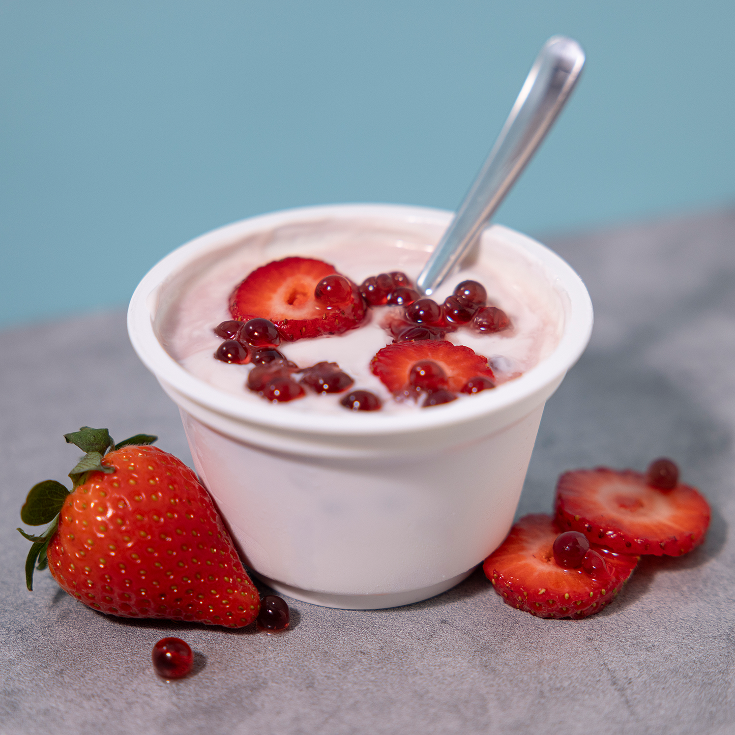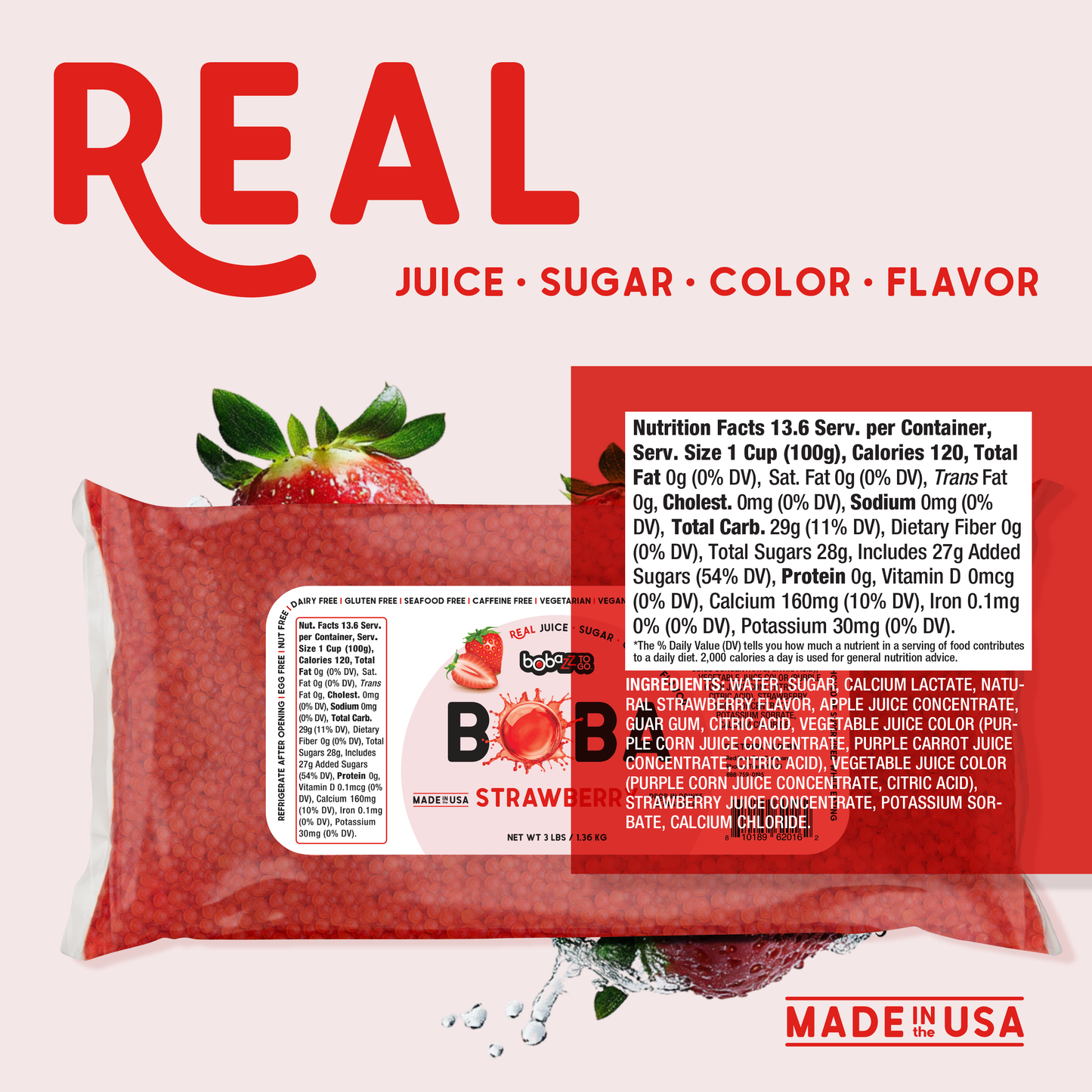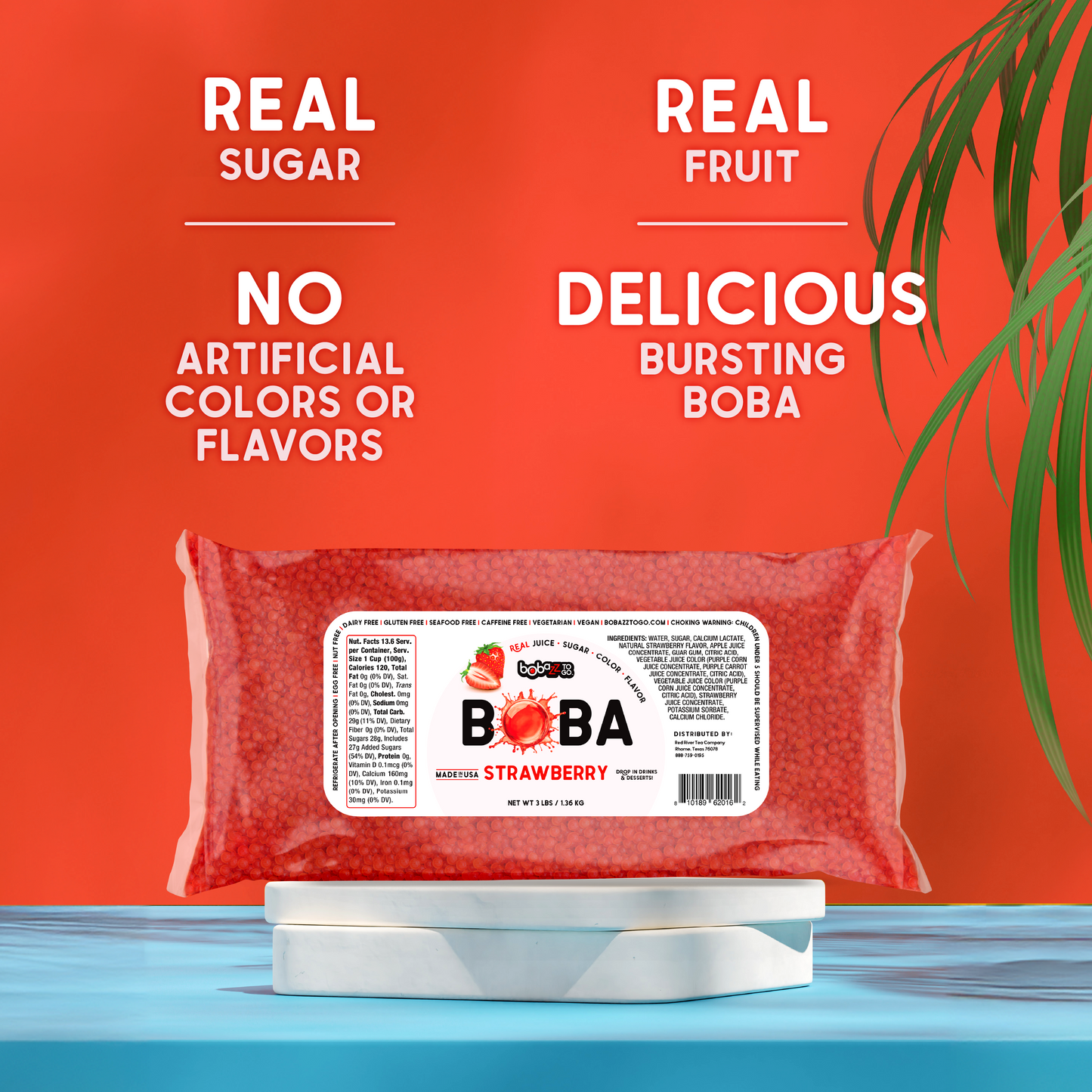 Sweet strawberry boba pearls, perfect for foodservice or at-home creations.